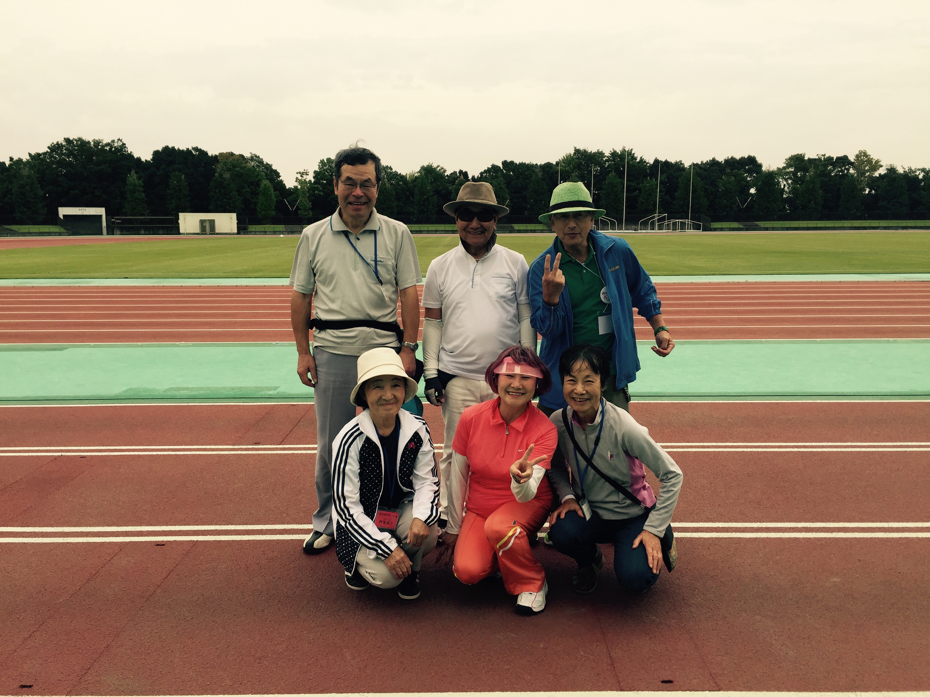 9月22日(金)、第14回川連協グランドゴルフ大会が川越運動公園陸上競技場で行われました。天候が心配されていましたが、約90名が参加して各期を混ぜて男女混合6名の16チームでプレイを楽しみました。