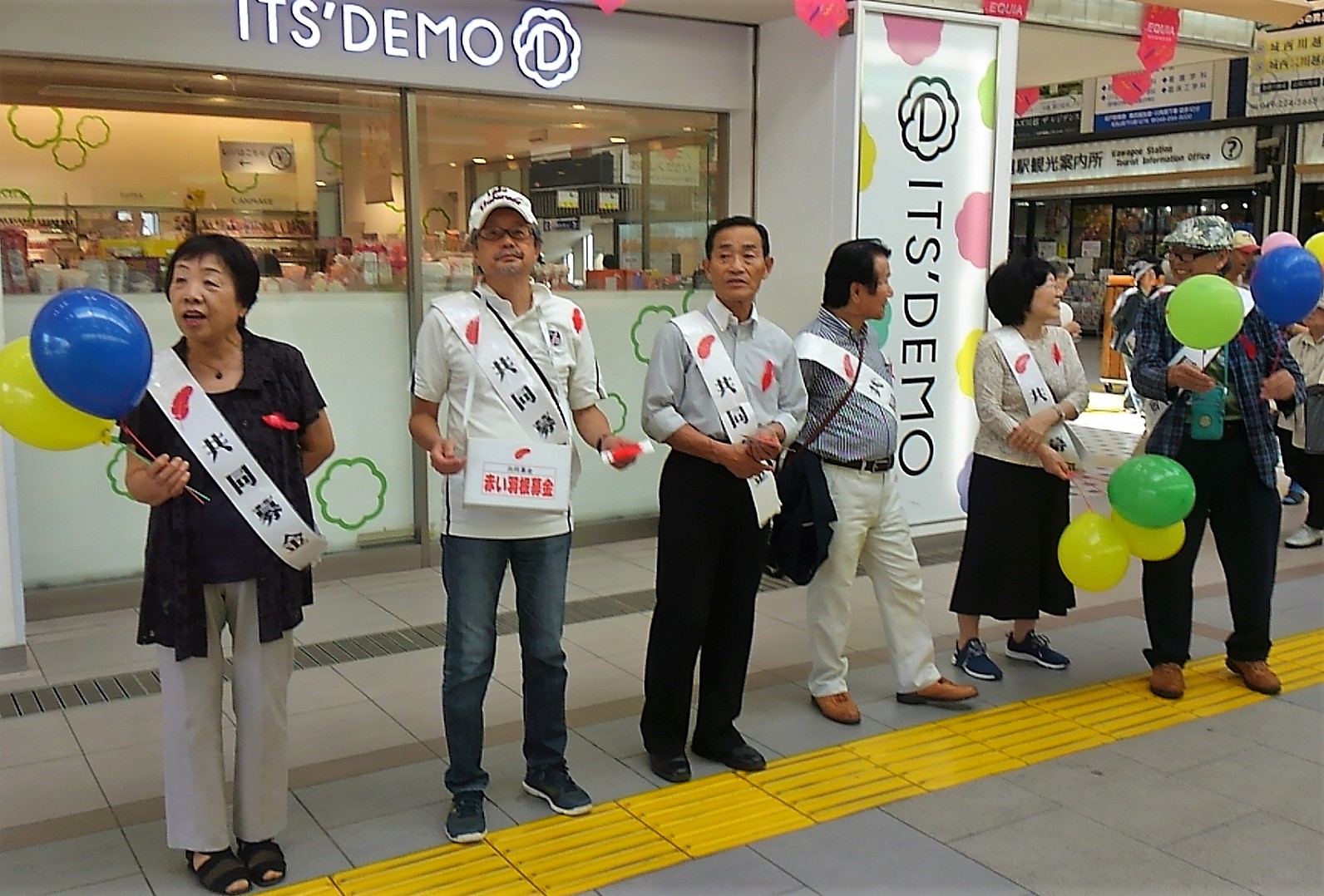 昨年は10月3日(台風の影響で順延し3日に実施)でしたが、今回は10月1日(赤い羽根共同募金の初日)のため、活動する他の団体も多く、場所どりの難しさを感じさせられました。駅頭活動には7名の方(桂輝雄・有住高雄・赤見和子・大河原美恵・中村彰・前島賢司・丸田純一)にご参加頂き、ありがとうございました。また事前募金にご協力頂きました皆様に感謝申し上げます。ありがとうございました。(写真をクリックすると大きくなります)