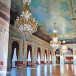 明治42年に東宮御所として建設されたネオ・バロック様式の西洋宮殿を、外国の賓客の接遇のために、昭和49年に迎賓館として蘇らせました。平成21年、本館・正門・噴水等が国宝に指定されている。(室内は撮影禁止のため、配布されたカタログを撮影しました。)