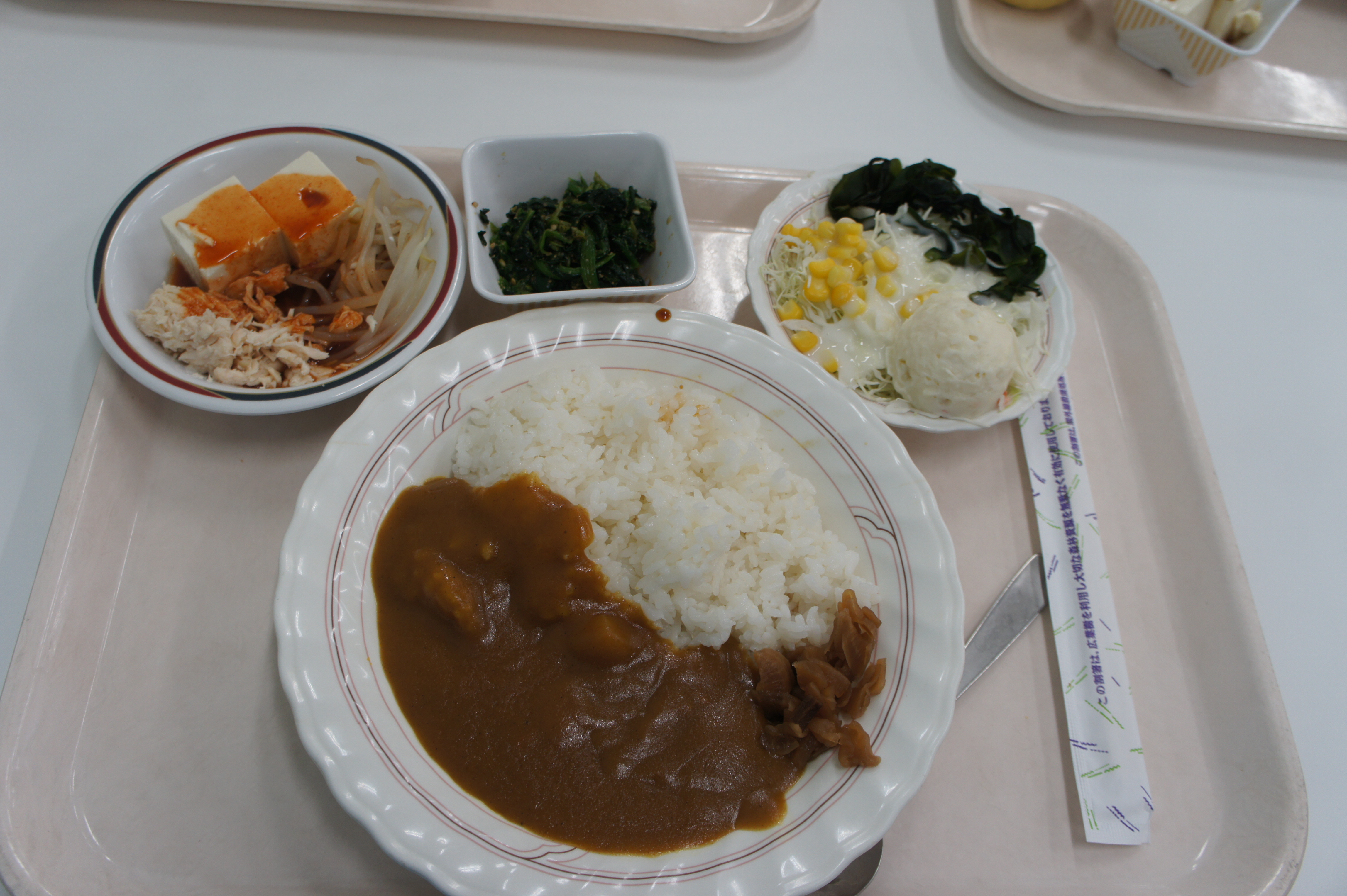 食堂は窓面が広く白壁で明るいカフェテリア方式で、気持ちの良い施設でした。